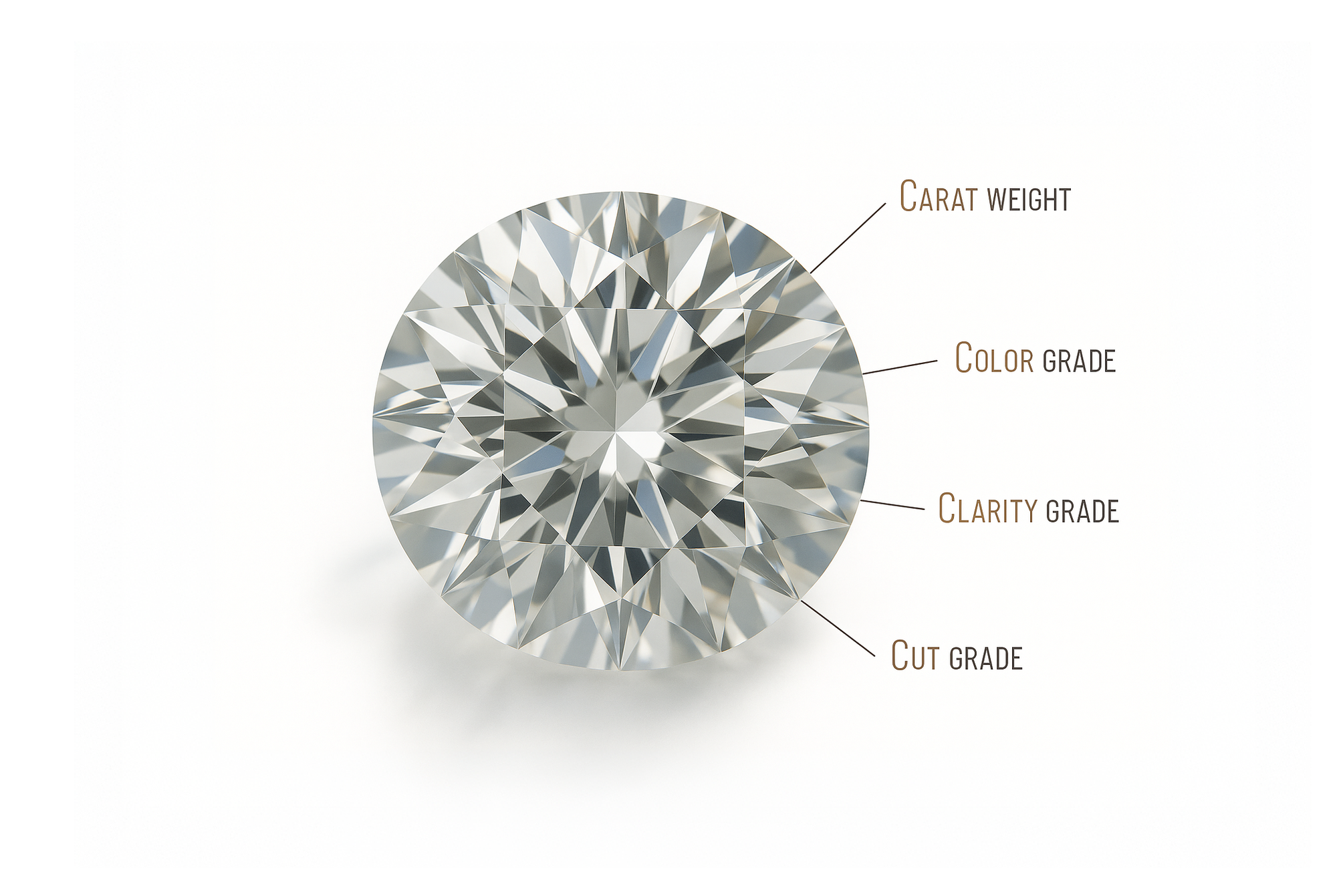 A: The 4Cs refer to Cut, Color, Clarity, and Carat Weight. These are the globally accepted standards used to evaluate a diamond's quality and ultimately determine its beauty, rarity, and value.